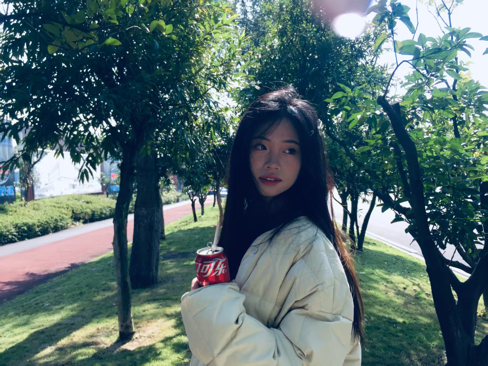 这是主播的女朋友,!阳光透过树叶碎碎地落在身上,暖黄的外套衬得整个人都软乎乎的,长发顺着肩线垂下来,自带一种松弛又舒展的美~手里攥着可乐罐的样子好灵动,像把春天的清爽都揣在了口袋里,这个照片,在我随手一拍下,都是史诗级的大片,完全就是奥斯卡级别的作品